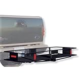 Versatile and rugged hitch-mounted basket offers great access to cargo and folds out of the way when not needed